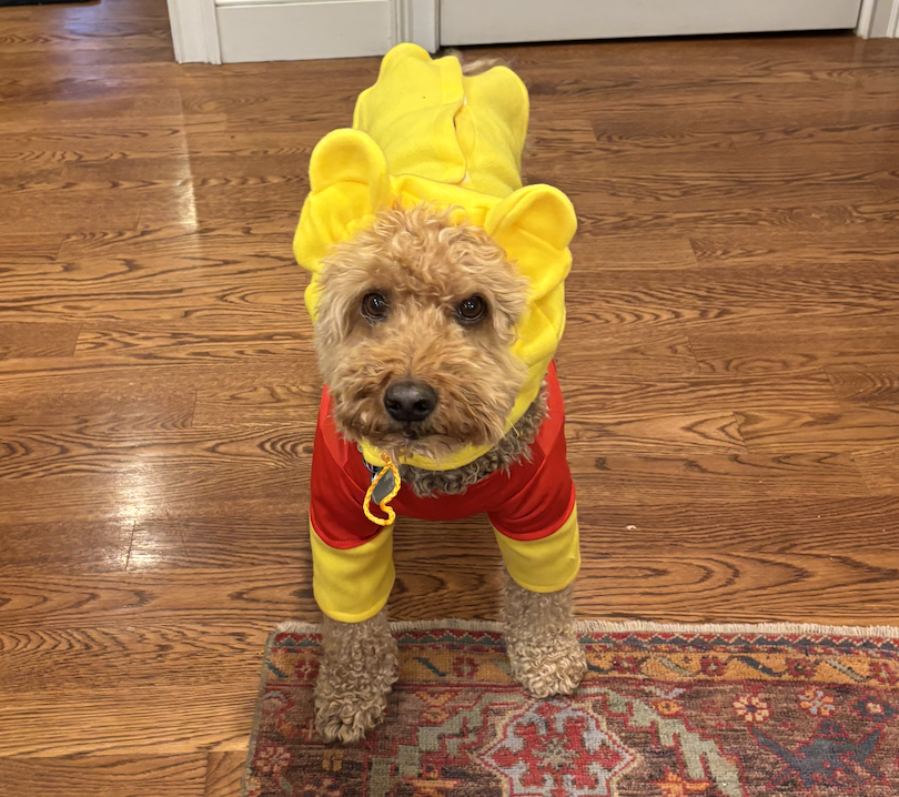 Meet Hank: my cute (and anxious) 11 year old labradoodle. He likes long walks in the woods, peanut butter and real meat (none of those yucky vegetables or fruits), and head rubs. Don’t mention thunderstorms, smoke alarms, or the vet to him. As you can tell, I love Hank a lot and the more you get to know me, the more you hear and see of Hank (whether you want to or not).