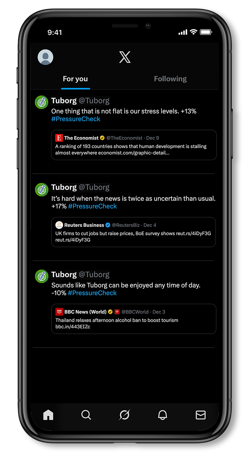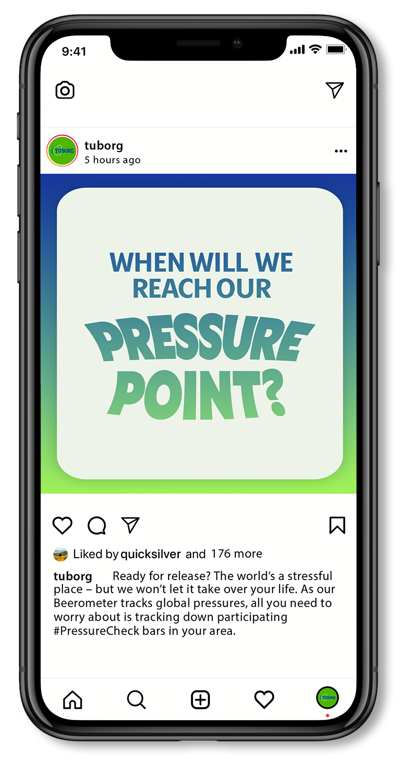 To globalize the experience and encourage connection in hard times, Tuborg will post teaser and interactive content on social media, host live streams on Twitch, Instagram, and TikTok, and partner with bars globally to give out 100 free Tuborgs when the Beerometer hits 100%. These bars will play live streams of the Beerometer throughout the campaign, creating buzz and engagement with bar-goers.